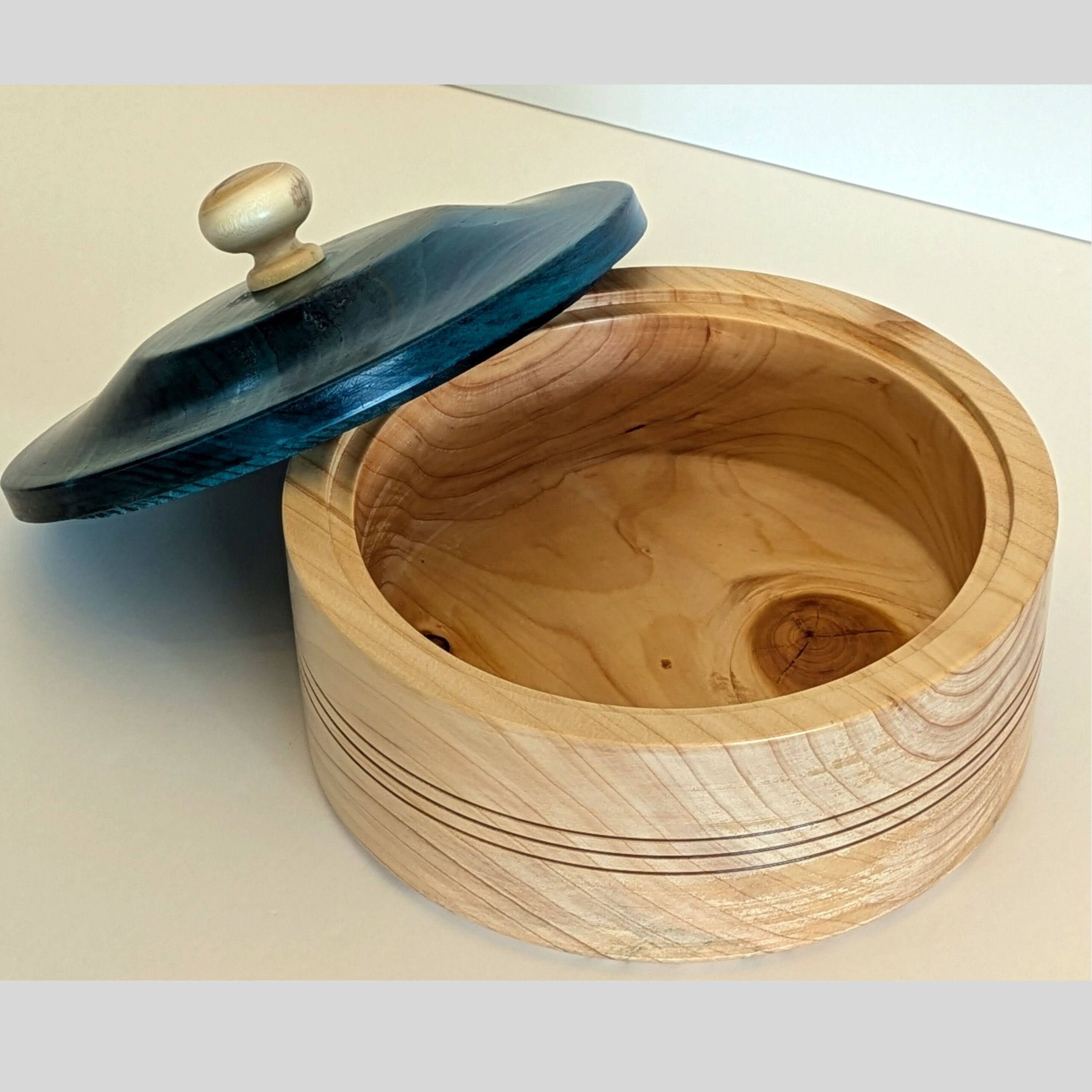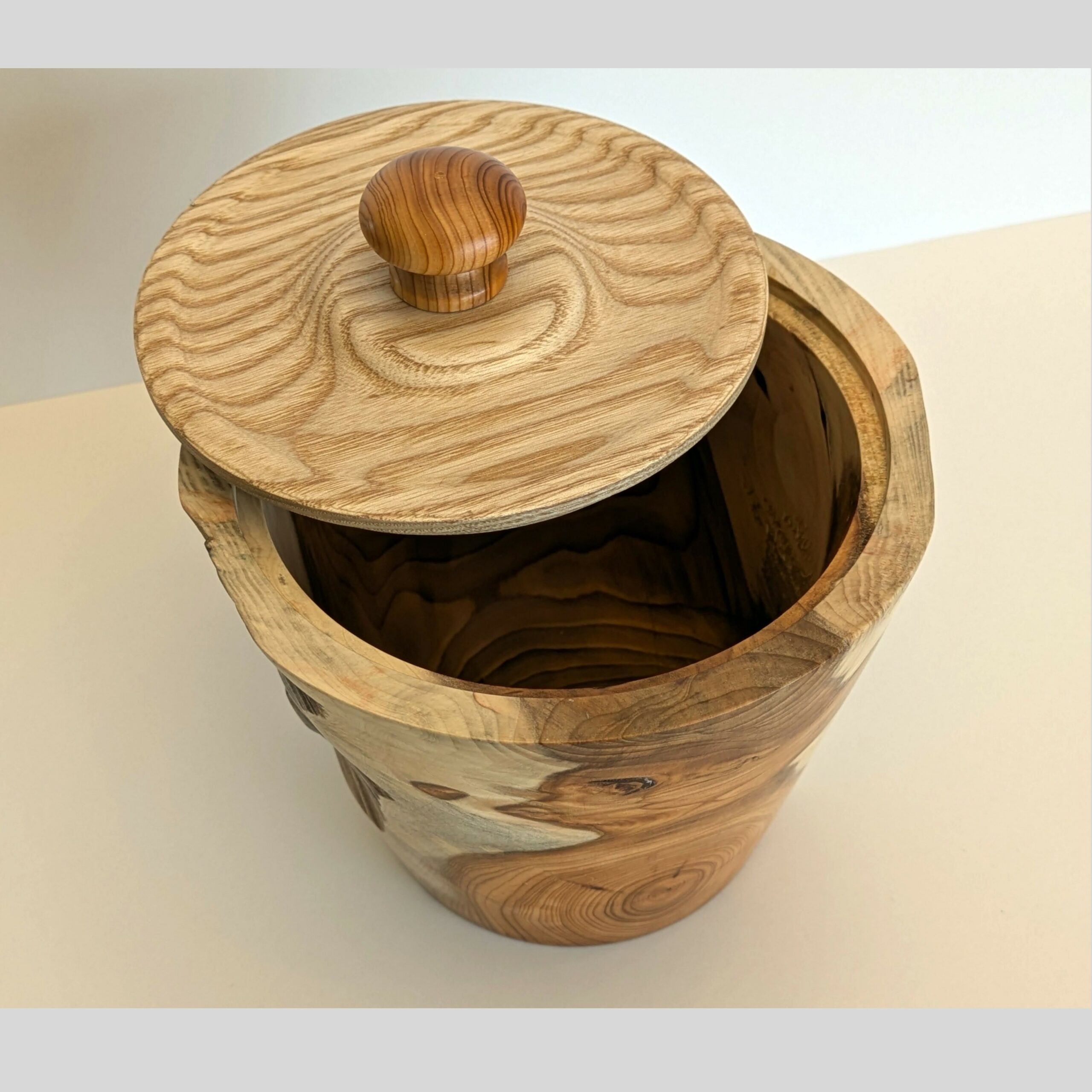 Le pied de lampe en if est magnifique comme la boîte à sel avec le couvercle teinté. Incroyable cette production tant quantativement qu esthétiquement. C est vraiment du grand art. Mille bravos