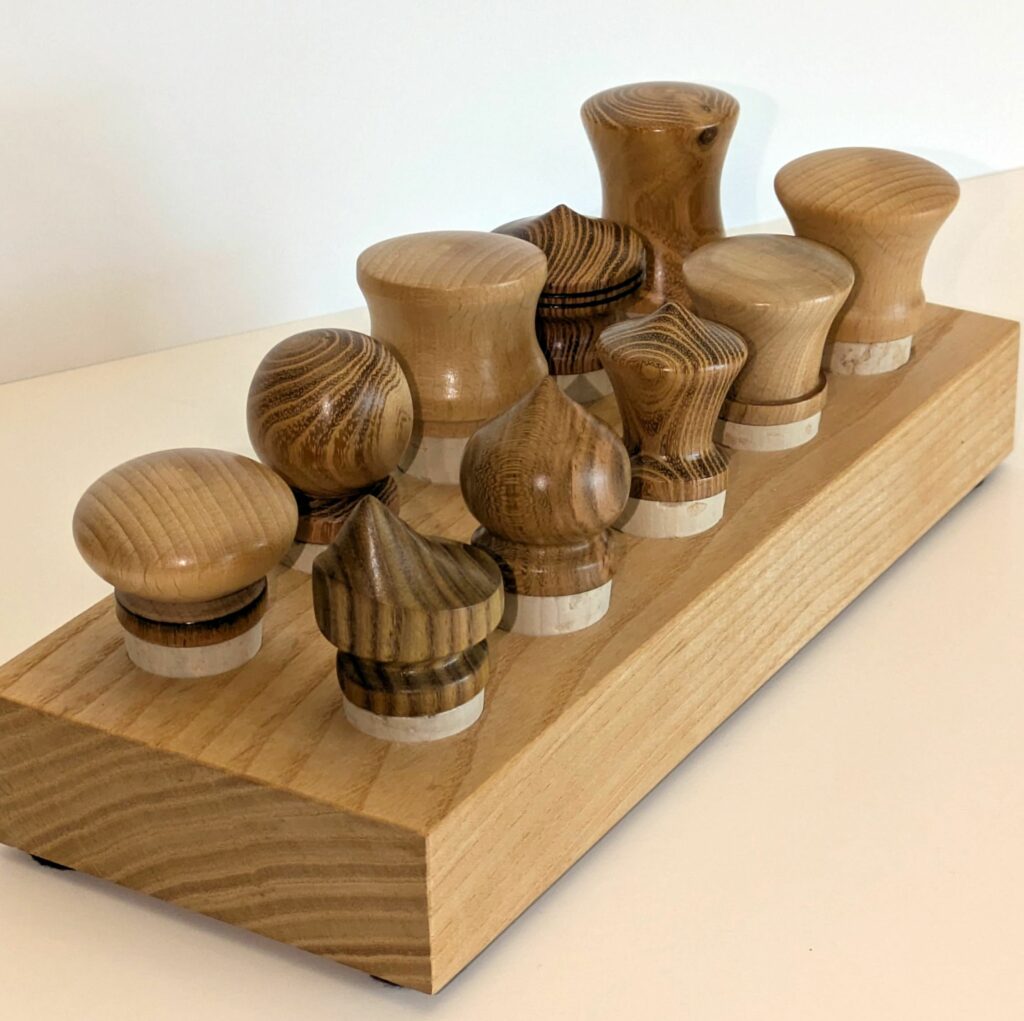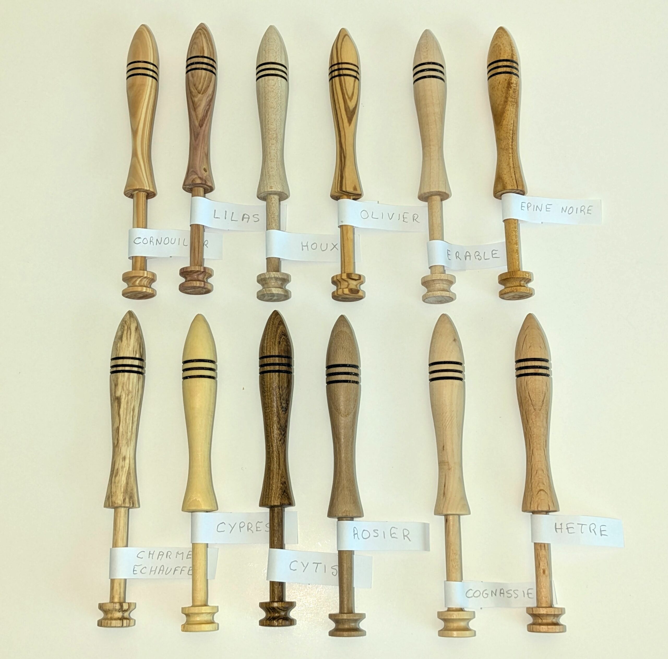 J’ai été amené à fabriquer un 2e lot de 12 fuseaux en juin, puis un 3e de 5 fuseaux en octobre ! Dans chaque cas avec de nouvelles essences de bois bien entendu.